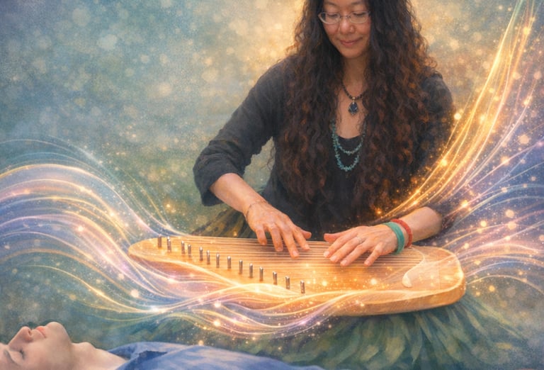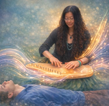 A Tao Lyre healing session is a deeply personal journey. The instrument is gently rested on your body, allowing its vibrations to travel through your tissues and cells — honoring your body's innate wisdom. Recipients often experience physical relief, emotional ease, and a profound spiritual opening — leaving with greater clarity, stillness, and peace.